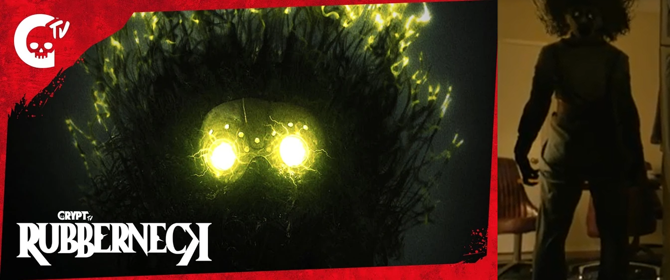 Alas, I fully realize that Launder Man came first, followed by Latch, both before Crypt TV started creating the Monster Universe, so they are stand alone short films. Additionally, her character in Launder Man is officially named Rachel in IMDB while she is Jenni in the Look-See series. Which could allow for the twins possibility, and Rachel was killed by the Launder Man, stuffed alive into the closet after surviving the spin cycle, and became another Look-see creature. Thus, potentially, there could be 4 different Look-see like creatures: Look-see, Launder Man, Rachel’s Ghost, and the one that came out of the locket.